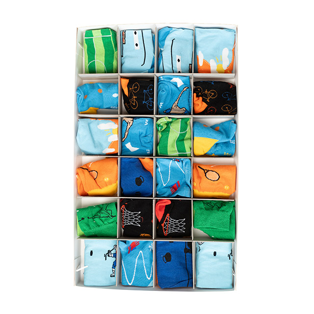 24 dni radości i niespodzianek. Adwent to okres oczekiwania, pełen małych radości, które każdego dnia przybliżają nas do Bożego Narodzenia. A czym byłby Adwent bez odrobiny niespodzianek? Nasz skarpetkowy kalendarz adwentowy to coś więcej niż zwykły kalendarz – to podróż pełna kolorów, wzorów i komfortu, która każdego dnia przynosi nowy uśmiech. Otwórz okienko każdego ranka i odkryj nową parę skarpet – od wesołych wzorów po świąteczne motywy, które ogrzeją nie tylko Twoje stopy, ale i serce. Ten kalendarz to także idealny prezent dla bliskich – przynosi 24 dni pełnych małych niespodzianek i wielkiej radości. Przygotuj się na Święta Bożego Narodzenia dzięki stylowemu i wygodnemu skarpetkowemu kalendarzowi adwentowemu.
