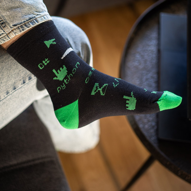 Idealne dla programistów, informatyków, geeków i wszystkich, którzy wiedzą, że turn it off and on again to całkiem sensowne rozwiązanie. Skarpetki, które mają stylowy kod w DNA.